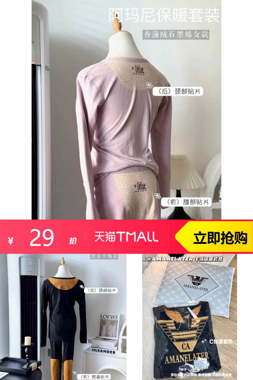 【有20%天降礼金抵扣5.98,淘金币抵扣2.99,最终到手仅需20左右!!】【黑金奢暖套装 】保暖衣修身型圆领, 圆领修身型设计,既保暖又显身材,让您的身材更加苗条。
