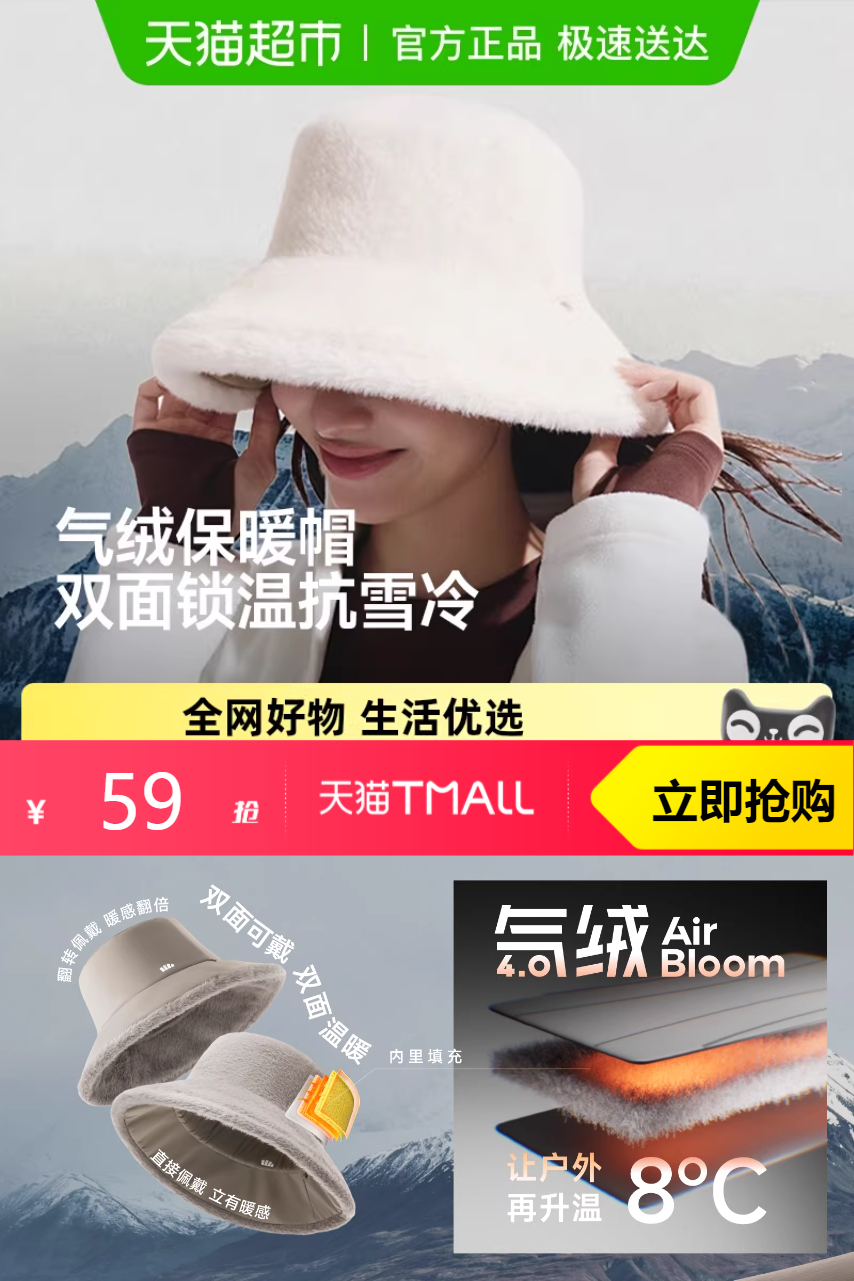 【1、叠加闪购红包10块2、淘礼金抵扣5.543、淘金币抵扣6.254、88折消费券抵扣5.095、政府补贴1.91 最终到手29】冬日必备,温暖又时尚!蕉下气绒,双面戴,两倍暖!渔夫帽型,百搭不挑人。舒适透气,活动自如。