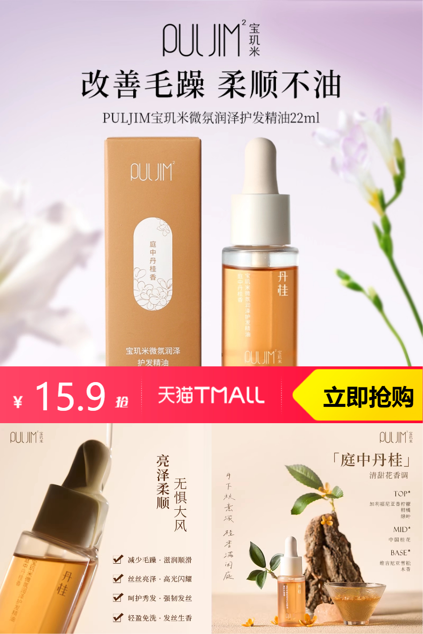 【淘金币0.6元,到手15.3元】宝玑米护发精油女改善干枯22ml,告别干枯,让你的发丝重焕光泽与弹性。