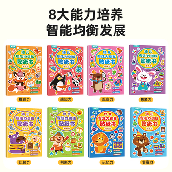 幼儿专注力训练贴纸书全套8册,专为2-6岁宝宝设计,锻炼逻辑思维与认知能力,趣味贴贴画,激发学习兴趣,早教必备!