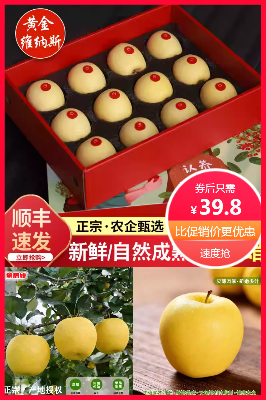 【顺丰速发】鲜思妙高原维纳斯苹果,外观金黄,入口酥脆,果肉丰厚,皮薄肉厚,脆甜多汁不腻口,,绿色食品,农企甄选,不打蜡,不催熟,一口咬下去全是汁,速抢