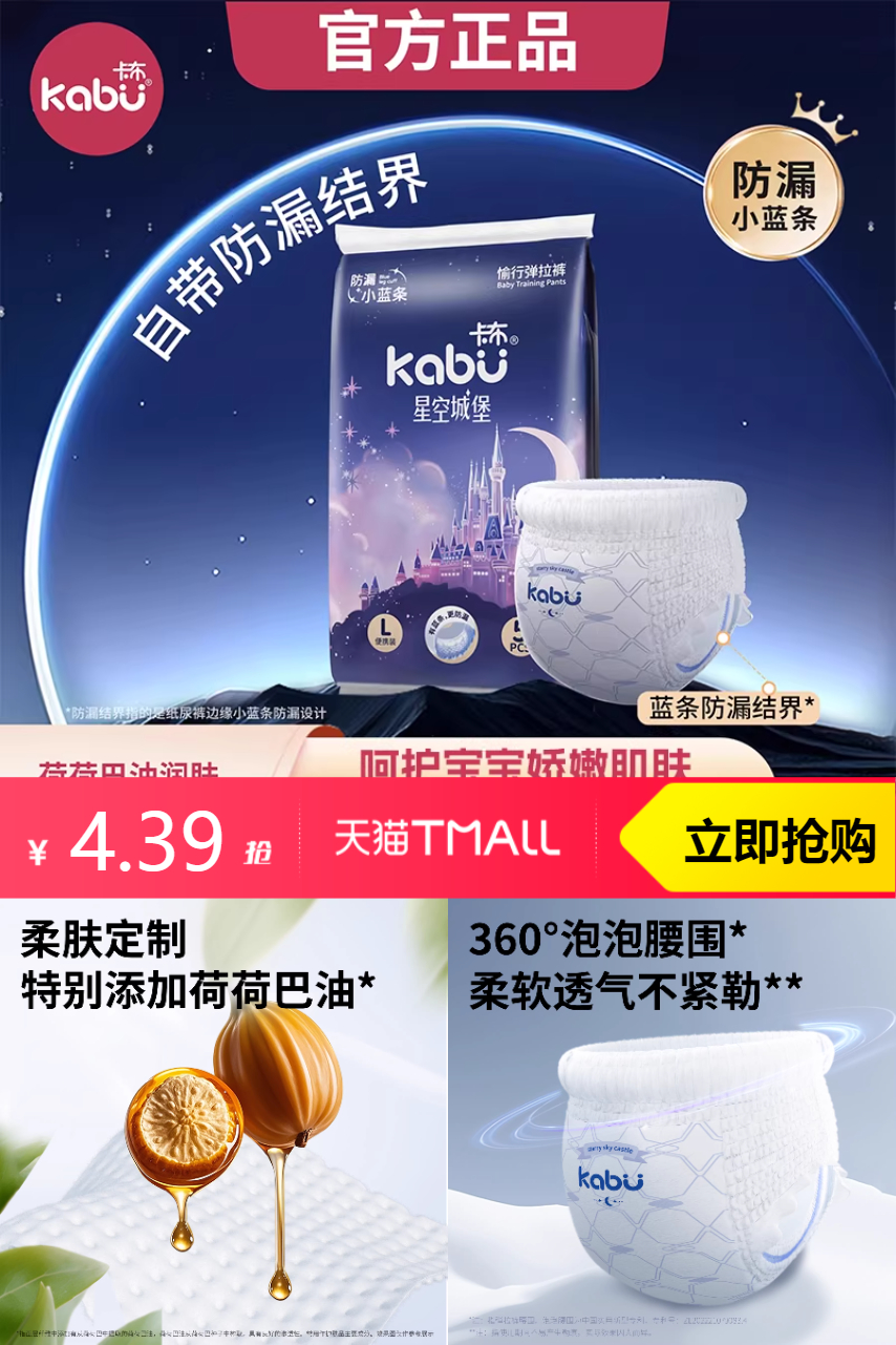 【原价9.39-券5-淘金币0.18=4.21元】卡布星空婴儿尿裤,超薄透气又舒适 ,一包体验品质之选,让宝宝自由玩耍,吸力强大,轻薄又柔软。