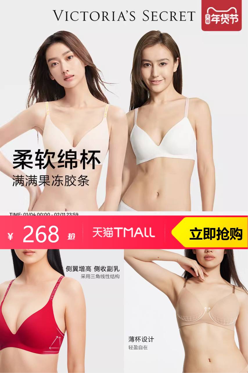 【凑消费券到手235.8】直降268|维密果冻条反重力Plus+内衣套装聚拢露背彩色文胸!!
