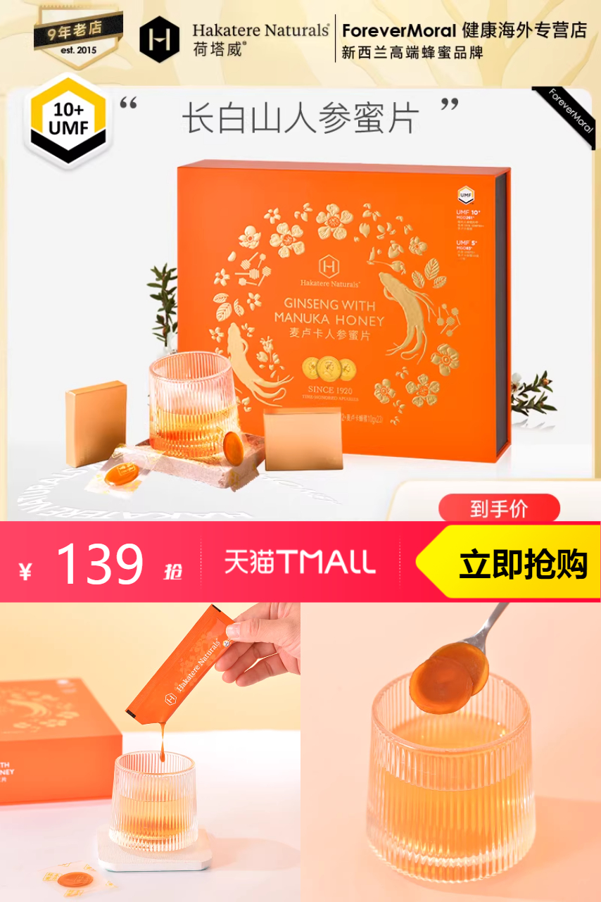 【淘金币8,叠消费券500-60,年货节红包0.16,到手价115.21】品质保证,值得信赖。人参麦卢卡蜜,独享健康人生! 一片之甜,天然珍品。