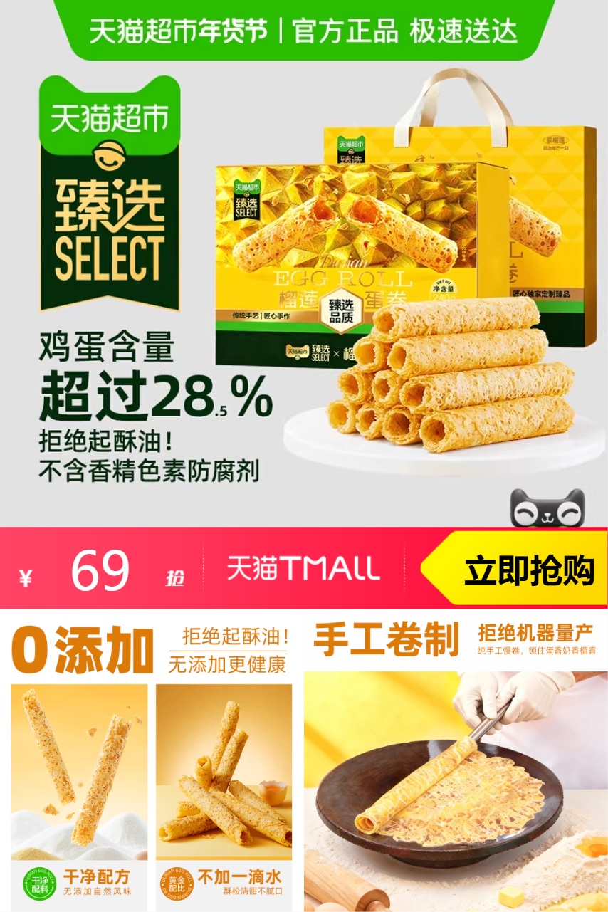 【原价109-立减30-品类券10-88vip3.45-品牌立减8-金币5.09-88折消费券7.33-hp返猫卡6.6=38.53】浓郁的榴莲香气扑鼻而来,每一层蛋卷都包裹着满满的榴莲果肉,每一口都仿佛在享受一场味觉盛宴。