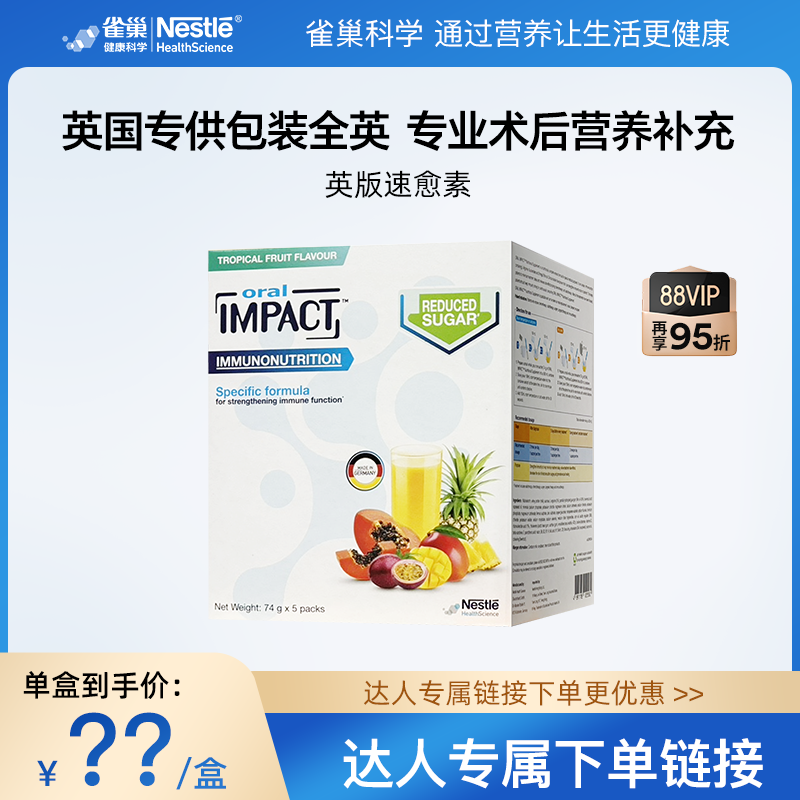 【全球优选】雀巢速愈素英版术后恢复营养品,为您的术后恢复提供支持,增强免疫力,帮助您更好地度过康复期。高品质蛋白质和多种维生素,助力提高术后体重,促进身体恢复。