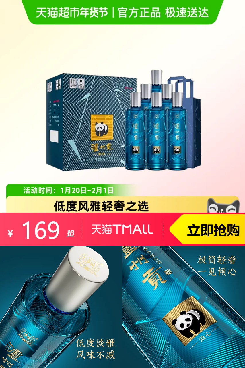【淘金币抵扣13.98,政府补贴,消费券凑单到手125左右】泸州老窖泸州贡泊心38度500ml*6瓶整箱浓香白酒纯粮宴请送礼。