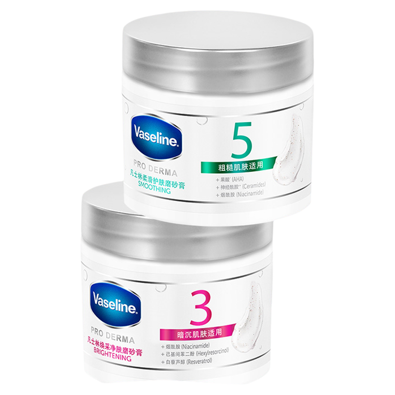 【精选产品】凡士林系列,专为您的肌肤打造肤质。海盐磨砂膏温和去除死皮细胞,深层清洁毛孔,烟酰胺与果酸有效改善肤色不均,焕亮肌肤光泽,让您的肌肤更加光滑细腻。搭配使用,效果加倍!
