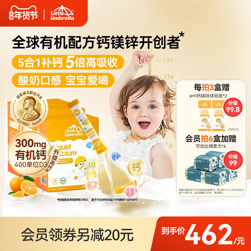 【3盒装】300mg小小伞有机钙镁锌液体钙儿童钙婴儿宝宝K2婴幼儿d3,富含维生素D3+钙,促进钙吸收,补充人体必需微量元素镁锌铜,有效促进骨胶原的形成,让骨骼更富有弹性和韧性。