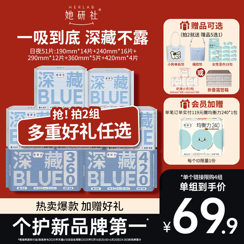 【她研社产品】她研社深藏蓝色卫生巾,精选优质棉质材料,呵护您的每一次使用。这款卫生巾不仅透气性好,而且轻薄柔软,穿着舒适。独特的设计使得它在透气的同时也能够保持干燥,让您在运动、旅行等各种场合都能安心使用。同时,这款卫生巾还含有天然植物提取物,有效抑制细菌滋生,保护您私处健康。赠品任选,让她研社为您带来不一样的体验!