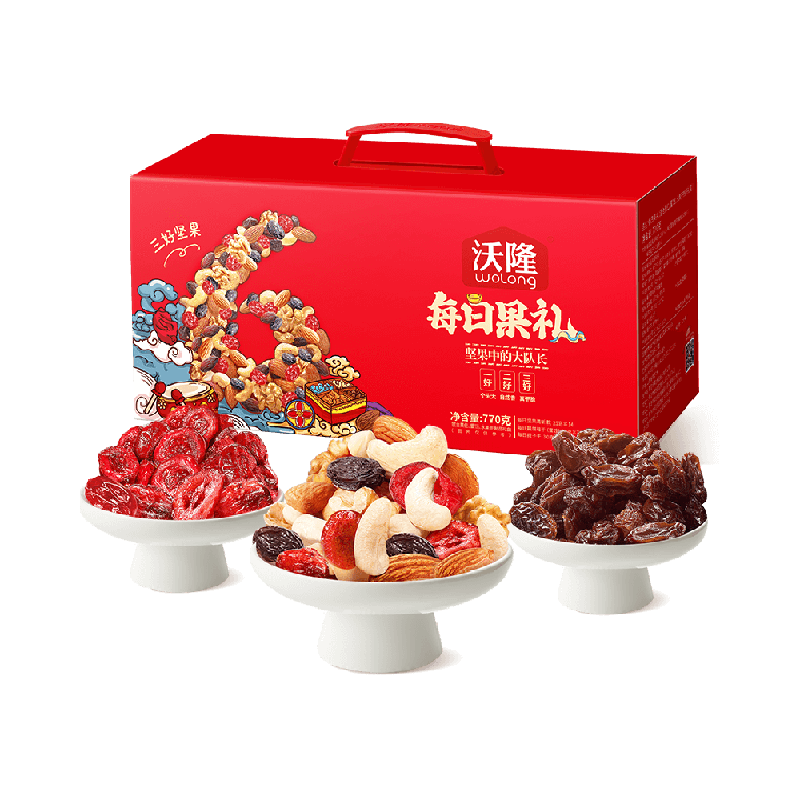 沃隆每日坚果礼盒,精选多种坚果、果干、果仁,健康美味,适合各种场合食用。每袋包装精巧,方便携带,送人佳品。