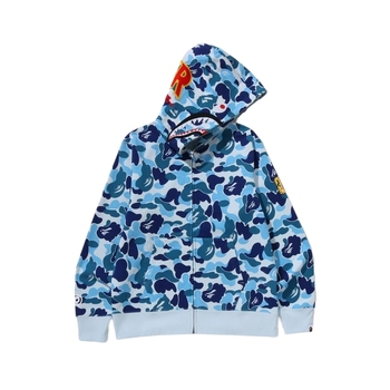 这款BAPE男装26年春夏系列的迷彩图案全拉链鲨鱼连帽卫衣开衫外套,以其独特的迷彩色泽和鲨鱼图案吸引着众多潮流爱好者的目光。其设计灵感源自于海洋生物与现代时尚的融合,让每一位穿上它的人都能成为街头巷尾的焦点。