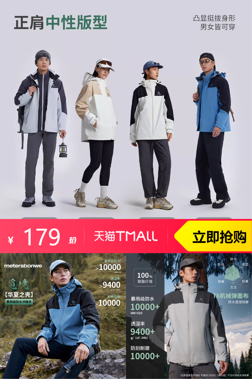 【有双倍礼金抵扣25.8,叠消费券预计到手110左右;全网史D !】弹大额疯四礼金破价!美特斯邦威三合一冲锋衣,30多种款式任选。