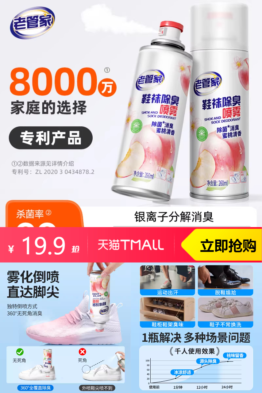 推荐:老管家鞋袜除臭喷雾260ml*3