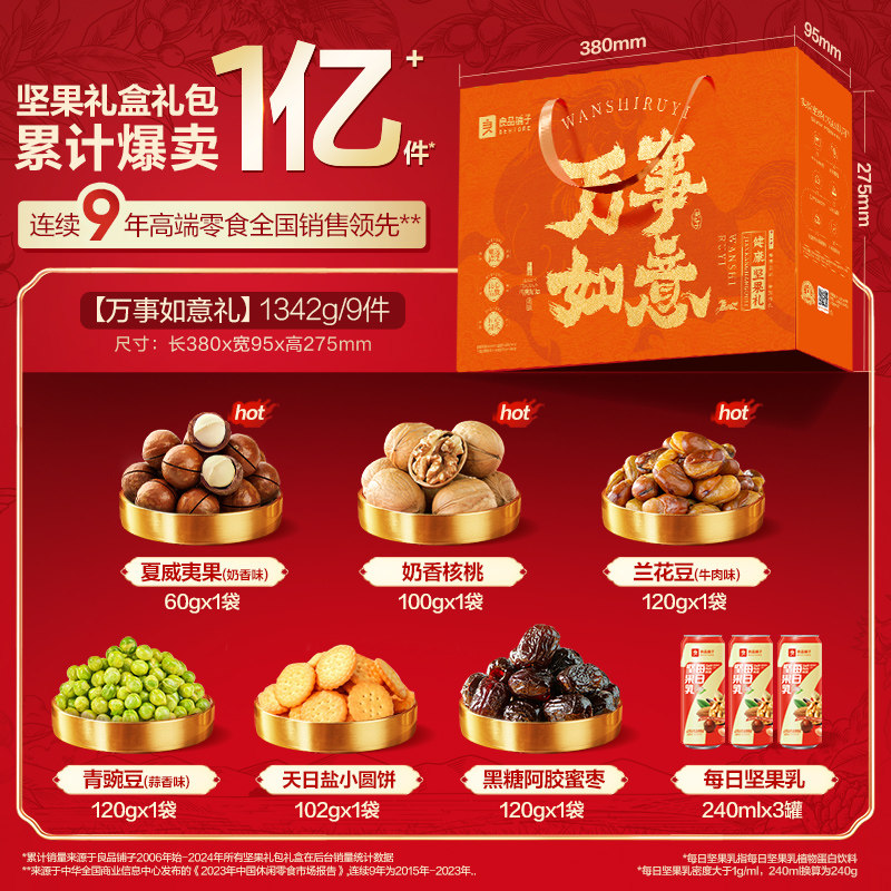 【叠加淘金币,200-25消费券到手31元1盒1342g】良品铺子欢聚畅享礼盒!精选8款人气坚果零食,独立小包+喜庆年味包装,送礼体面又贴心~年货季超值组合,比单买省心省钱,囤货送人都有面儿!