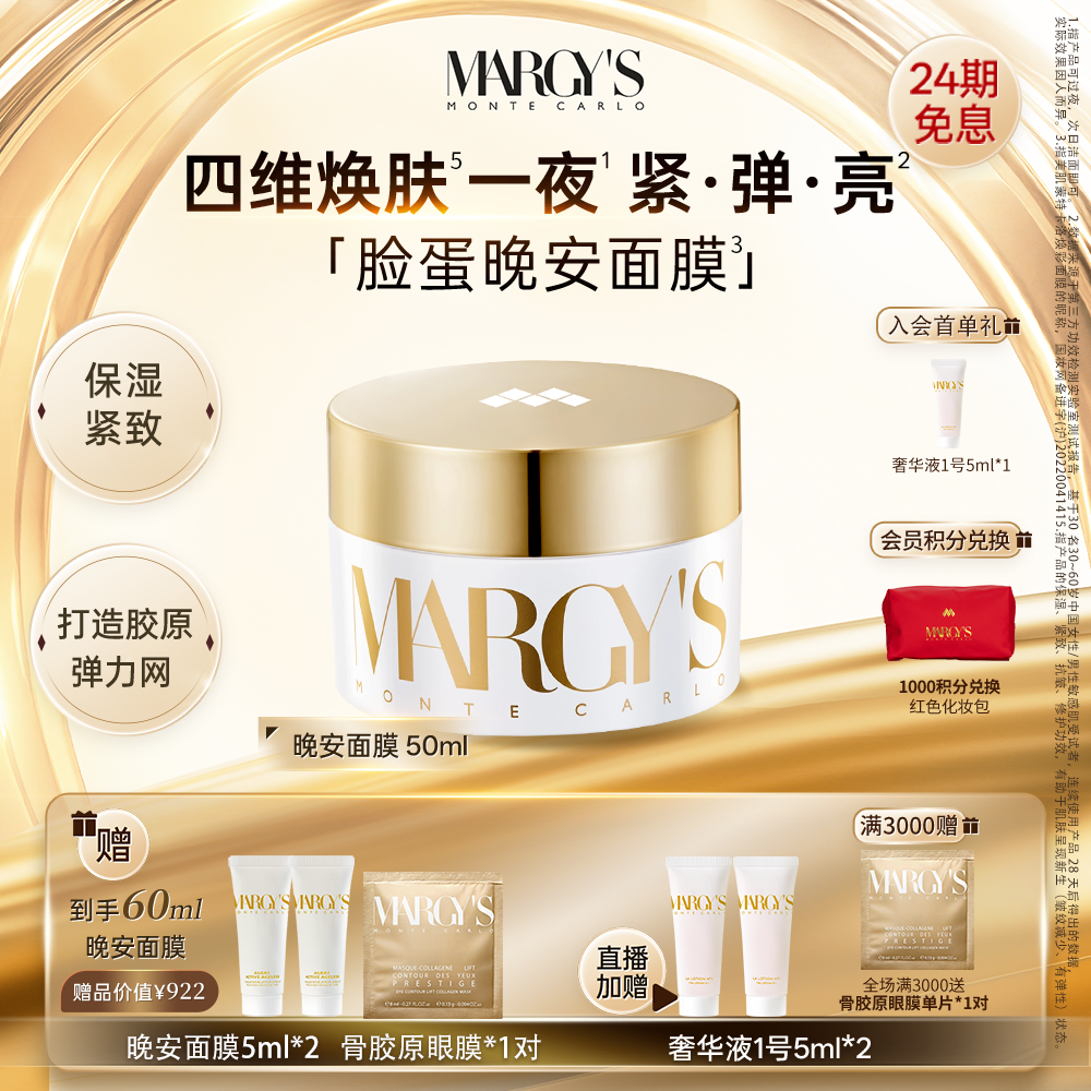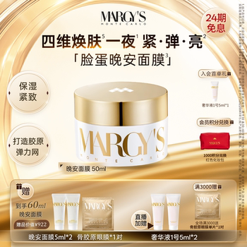 【章小姐同款晚安面膜】MARGY'S蒙地卡罗抗皱紧致修护焕彩面膜晚是MARGYSMONTECARLO旗舰店的一款热销产品。这款面膜采用了先进的活性成分,能够深层滋养肌肤,提升肌肤弹性和光泽度,帮助你拥有健康、美丽的肌肤。它不仅适用于各种肤质,而且易于使用,只需轻轻一敷即可享受舒缓放松的时光。