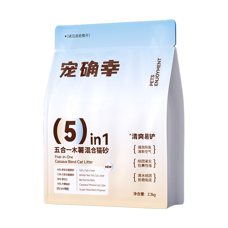 【宠确幸】五合一白茶豆腐猫砂,精选天然植物配方,除臭,几近无尘,不易粘底,轻松解决猫咪排泄问题。超吸水性设计,让清洁更方便快捷,有效减少异味散发,呵护宠物健康生活。
