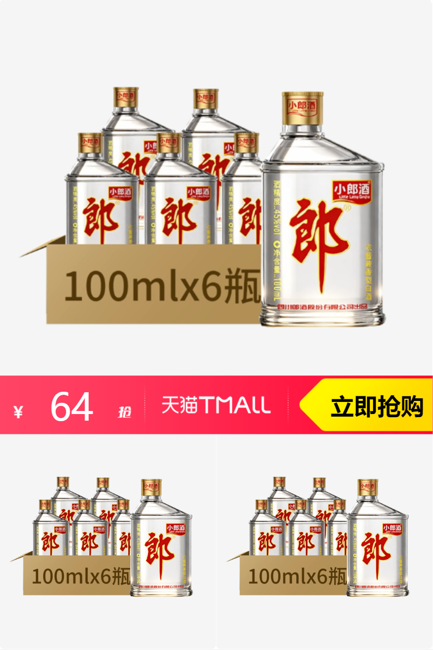 【64-淘金币2=62元】郎酒小郎酒45度兼香型100ml*6瓶,小酌良伴。