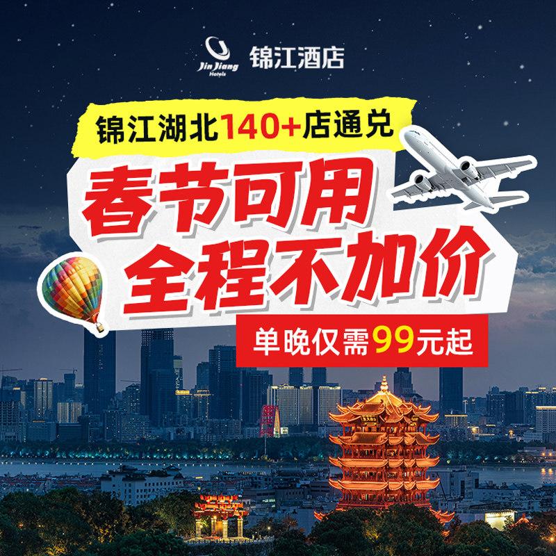 【春节不加价】锦江酒店旗舰店为您带来【春节不加价】锦江湖北140+门店1晚通兑优惠!精选优质客房,让您尽享温馨舒适的住宿体验。详情请咨询官方客服。