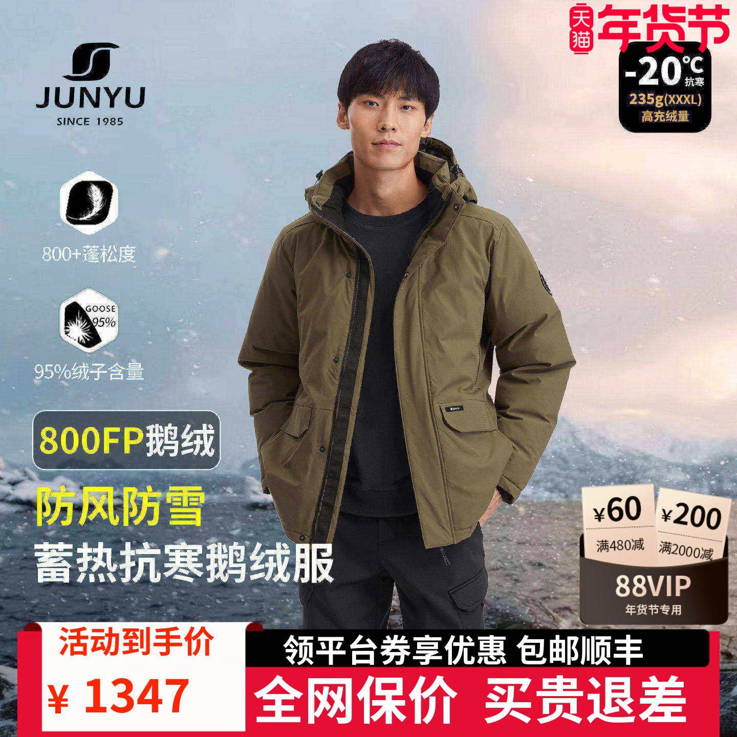推荐:君羽户外800蓬鹅绒服男短款加厚