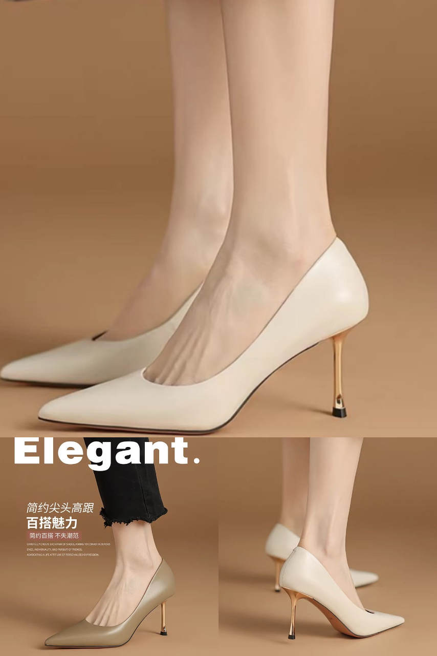 RosaBianca浅口百搭高跟鞋细高跟,细腻胎牛皮鞋面,柔软舒适,时尚百搭!2色可选,品质保证,速抢!