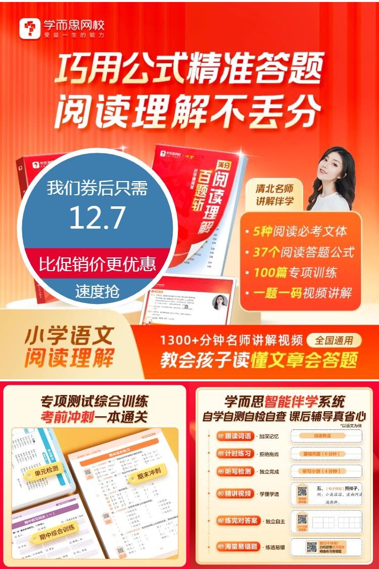 【赠训练课+名师精讲视频】学而思新升级满分阅读理解一本通,套公式练真题,踩分准提分快!内容全、方法好、精.准学、能运用、名师讲、小学语文阅读理解专项提升!