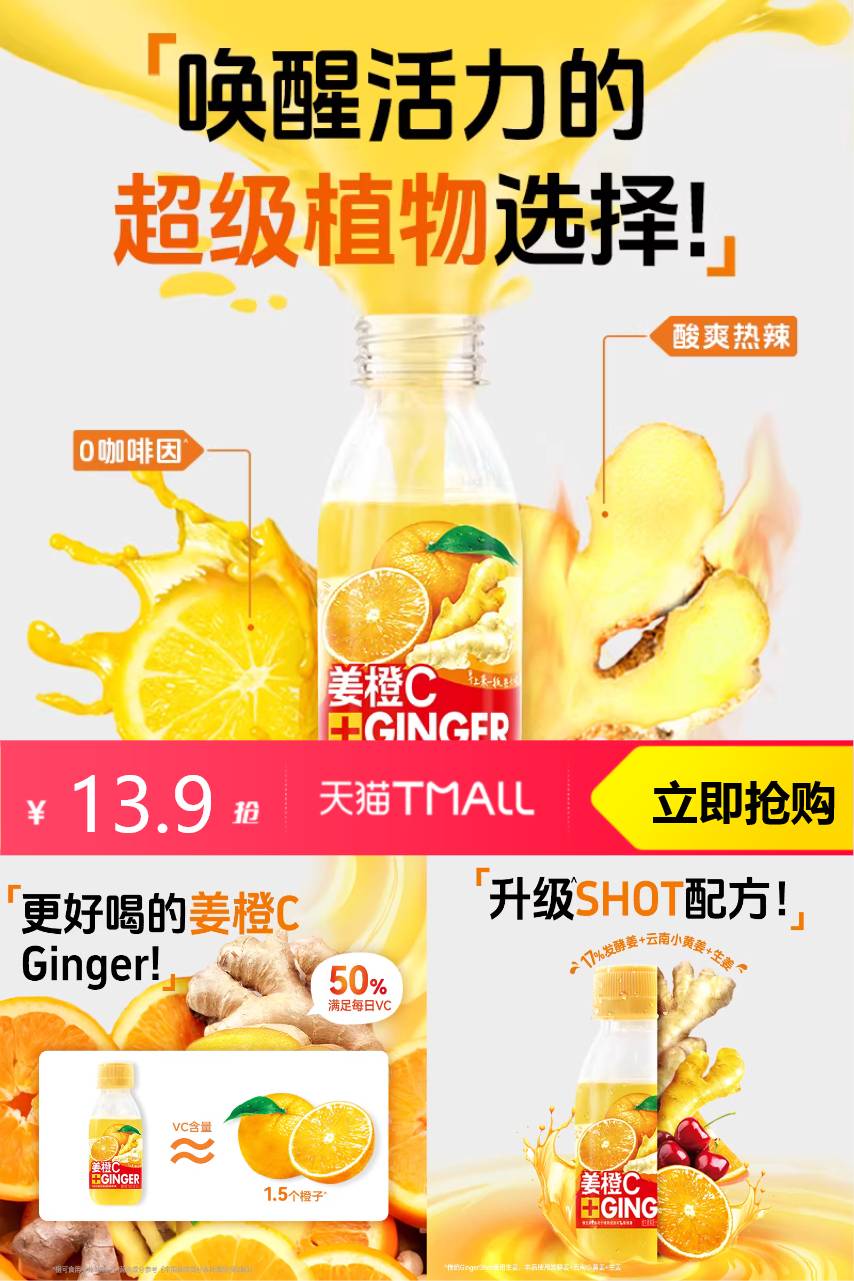 超级盒子生姜柠檬汁维生素饮料6瓶,纯天然果蔬提取,无添加剂,健康又安心!