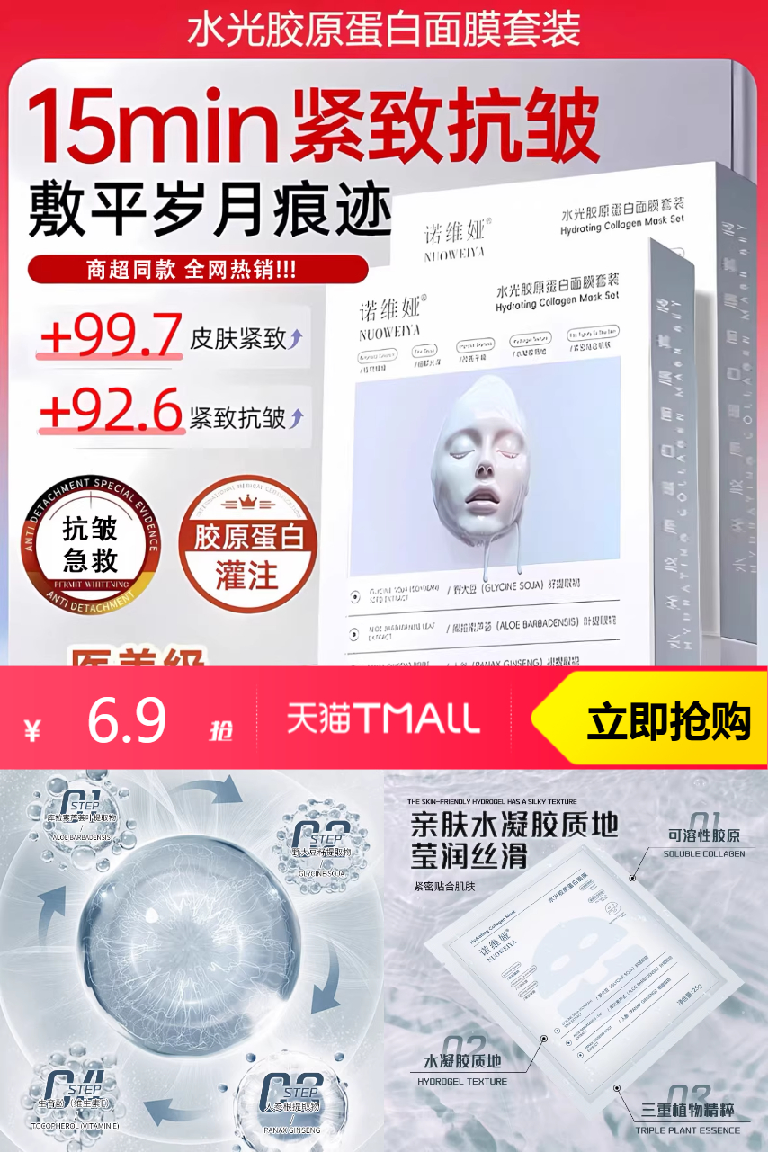 水光胶原蛋白灌注炮面膜保湿一盒5片,胶原蛋白,抗皱紧致。臻选植物精华,改善肌肤干燥、粗糙状态。保湿效果,真的是"润物细无声"的!用后,仿佛瞬间进入了一个水润的秘密花园,皮肤像被甘露滋润过一样,滑嫩又饱满!