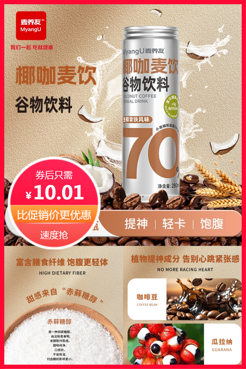 【可签到】麦养友生椰拿铁麦饮小麦糊粉,天呐‼️这代餐太方便了,学生党必备,快速充能,扫除饥饿,富含膳食纤维,饱腹更轻体,好喝又健康,提神更平缓,口感 细腻,一拉一开即饮满足,方便快捷
