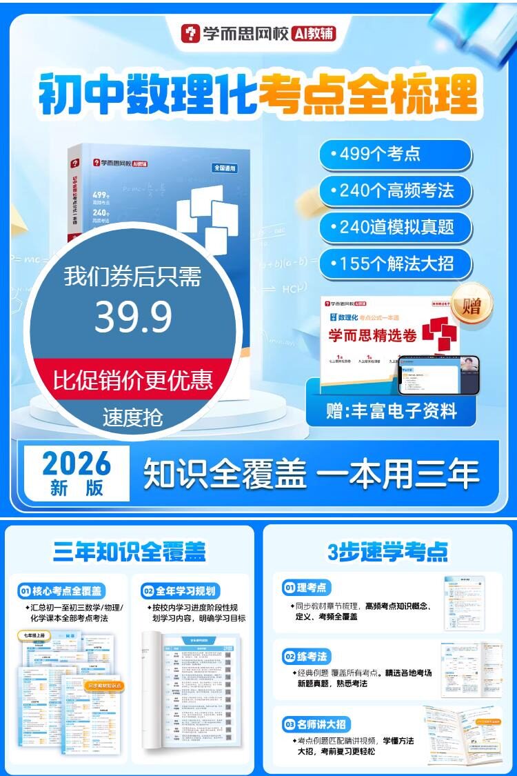 【赠丰富电子资料】学而思初中数理化考点公式一本通,499个考点,240个高频考法,240道模拟真题,155个解法大招,知识全覆盖,一本用三年!