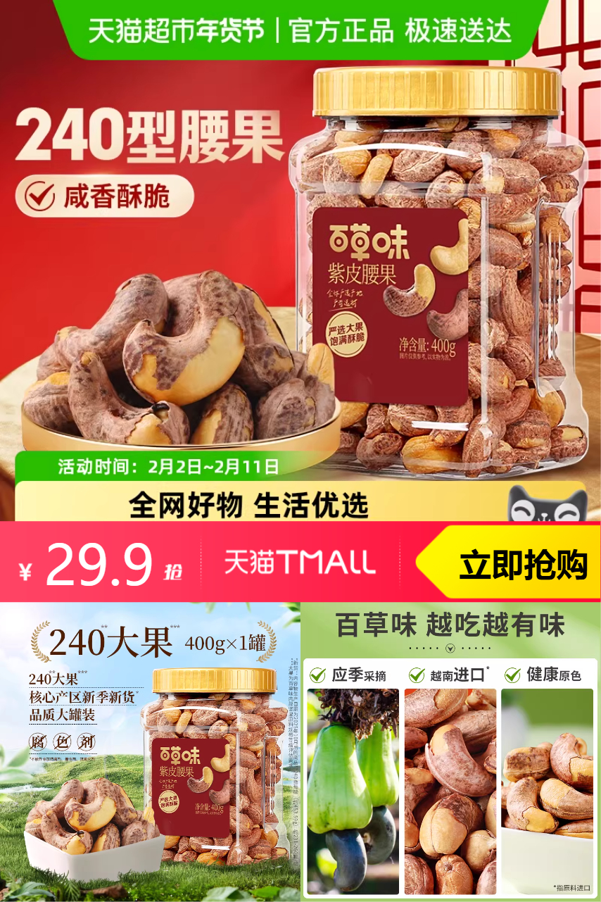 【原价45.9-立减16-88vip1.5-金币3.66=24.74】每一颗腰果都如同小小的能量炸弹,让你在享受美味的同时,也能感受到健康的滋养。