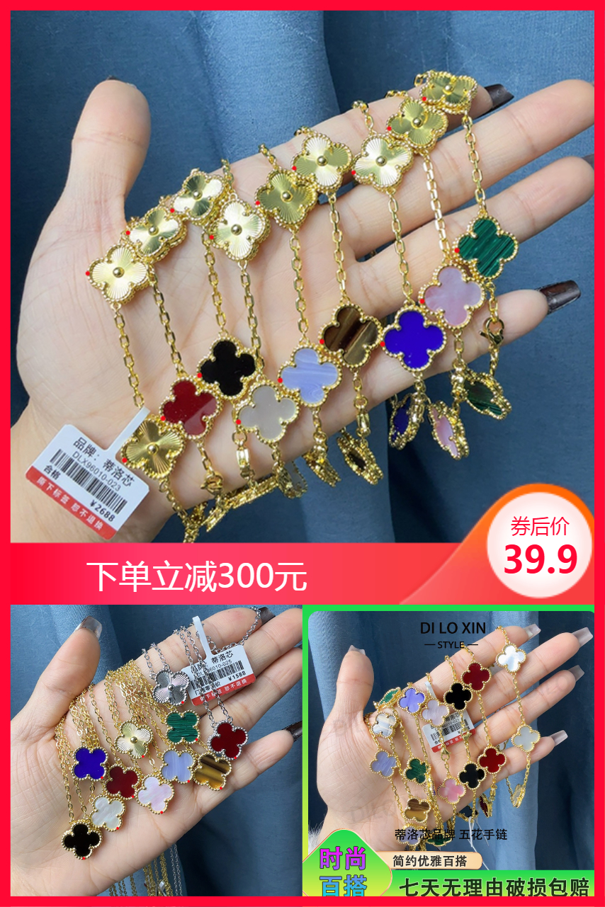 经典五花四叶草手链项链活动来啦!男生女生都能带买回去送爱人、送亲戚、送姐妹、送闺蜜,实物+证书+礼盒+手提袋都有!防过敏,不掉色!!网红爆款,一年四季都可戴!每款都敲美的!都超有质感,而且还不掉色!喜欢吸睛的宝子,强烈推荐!戴真的超高级的!很仙!