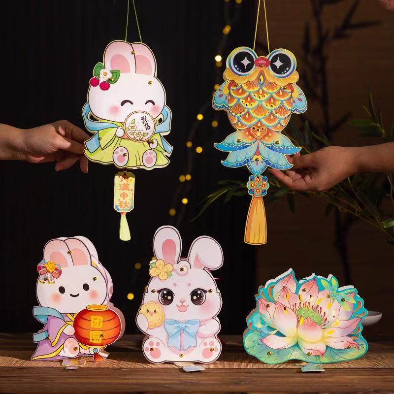 2026中秋节中秋灯笼儿童手提挂饰花灯diy材料古风发光手工兔子