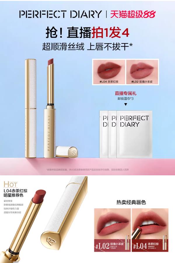 淘金币下单更优惠!到手170元享2支装,完美日记小细跟口红,丝绒哑光质地,滋润不拔干,显白豆沙色温柔高级,轻松打造精致唇妆。专柜同款品质,学生党也能轻松入手的显白神器!
