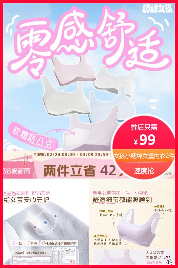 官方立减22元+券57元后约99元2件,单件只需49.5元,新手女宝的件小背心,舒适细节都能照顾到,软糯一片棉,加宽肩带,大弹力底围!