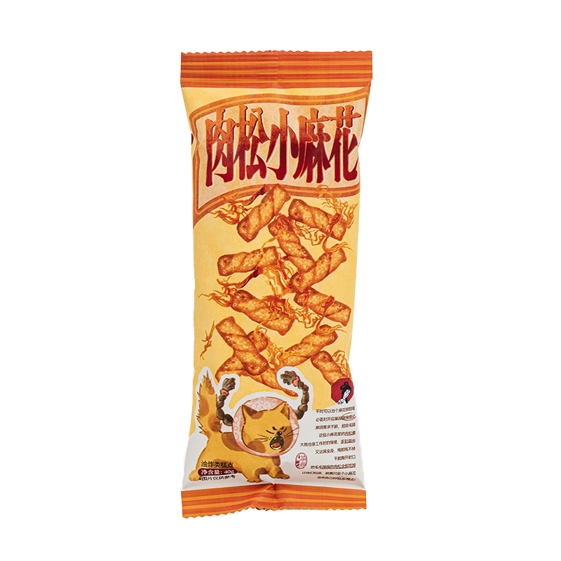 茶颜悦色肉松小麻花是经典的休闲小零食,肉松酥脆,咸香可口,适合在午后或追剧时食用。包装采用可爱的小袋子设计,方便携带,随时随地享受美味。