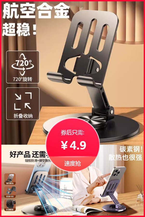 航空合金,无极旋转支架,碳素钢!散热也很强。折叠收纳,方便携带。