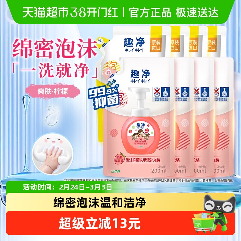 狮王精选天然成分,温和不刺激,有效杀菌除菌,适合家庭及儿童使用。独特混合香型,清新自然,让洗手时刻充满乐趣。天猫超市优惠,快来选购吧!