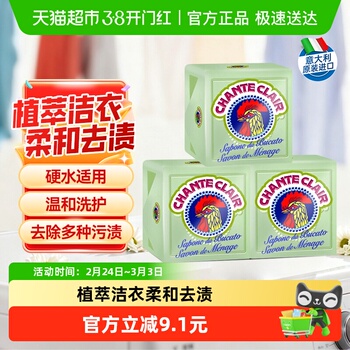 【无添加】CHANTE CLAIR大公鸡植物洗衣皂,温和清洁,有效去污渍,适用于各种材质衣物,让您的家变得更干净、更舒适。300g装,满足您日常需求,让您在洗涤过程中享受自然与舒适的双重体验。