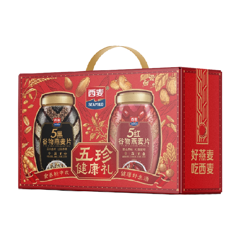 【年货节礼盒】西麦五珍健康礼五黑五红燕麦片2罐1700g春节送礼长辈中老年营养品,精选天然食材,营养丰富,口感香滑,是您和家人度过美好时光的好选择。