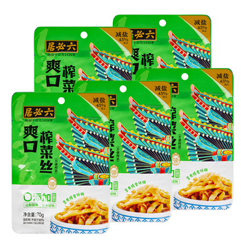 【第二件0元】六必居爽口榨菜丝鲜香脆口榨菜片学生下饭菜咸酱菜。零添加苯甲酸钠和山梨酸钾,含有膳食纤维。10袋装,实惠划算,快来选购吧!