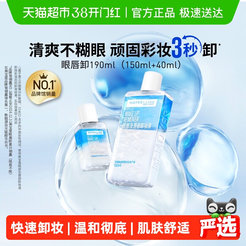 【下拉详情享优惠】美宝莲眼唇卸妆水眼唇卸妆液套装卸妆油,浓妆轻松卸,适合各种场合使用。190毫升容量,方便携带,随时随地保持肌肤清爽洁净。