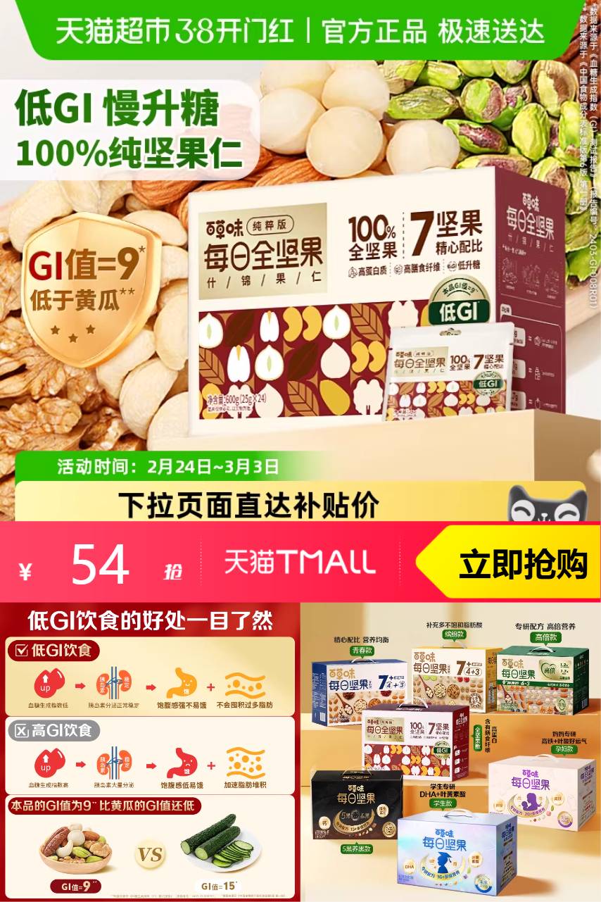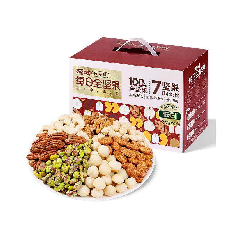 【原价79.9-直降25.9-金币6.38-88折消费券5.76=41.86】百草味低GI每日纯坚果混合过年送礼礼盒!到手600g含7种全坚果:开心果仁、夏威夷果仁、巴旦木仁、腰果仁、棒子仁、核桃仁、碧根仁~