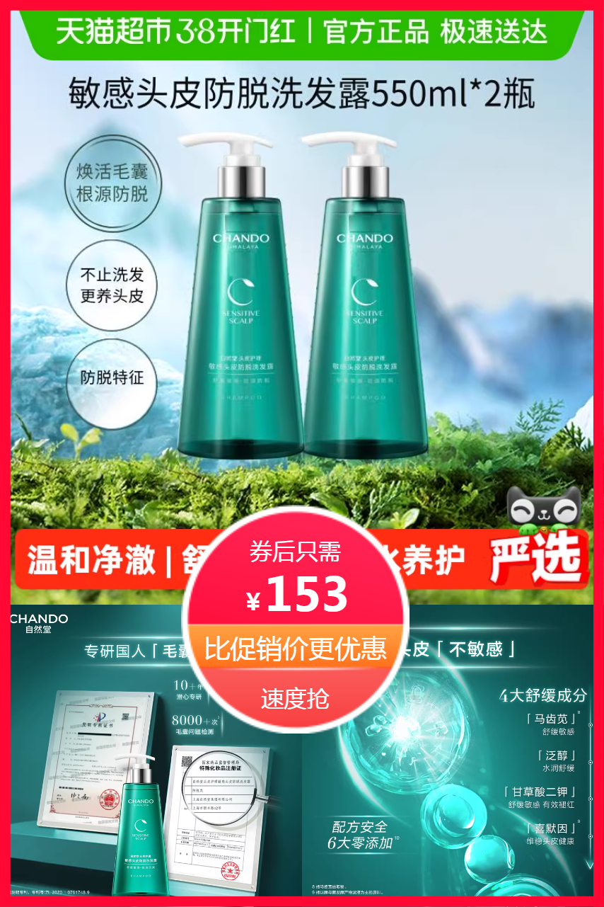 官方立减+88vi+淘金币+红包,到手约117.9元,自然堂头皮护理敏感头皮防脱洗发露,强健发根,固发防脱,滋养育发,平衡头皮,强韧细软头发,促进营养吸收!【赠运费险】