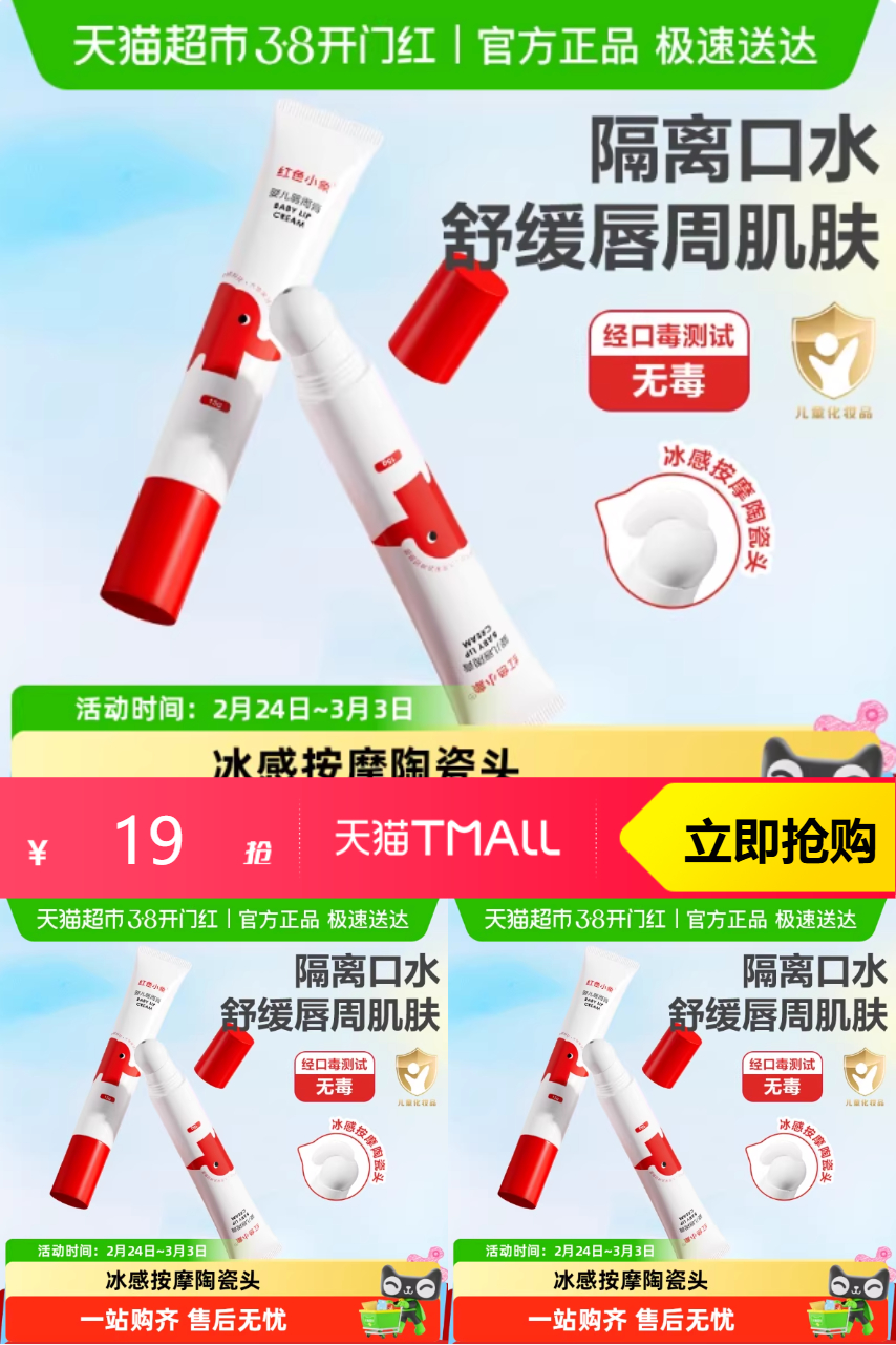 【原价49-官方立减12-商品券18-88vip优惠0.95-淘金币2.45-消费券1.94=到手13.66元】红色小象宝宝新生儿唇周膏婴儿口水膏15g,超赞!