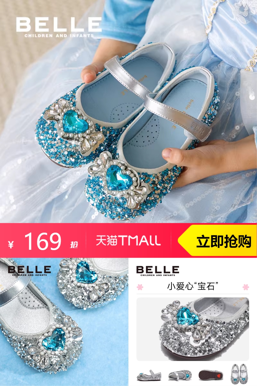 【淘礼金抵扣33.8元,88vip专享9.5折抵扣8.45元,淘金币抵扣14.38元,200-25元消费券抵扣17.95元,到手价93.42元】 闪烁的水晶与亮钻,让你的小宝贝瞬间成为人群中的焦点。独特的鞋面设计,时尚而不失公主风范,这样的爱莎公主款式怎能不心动?