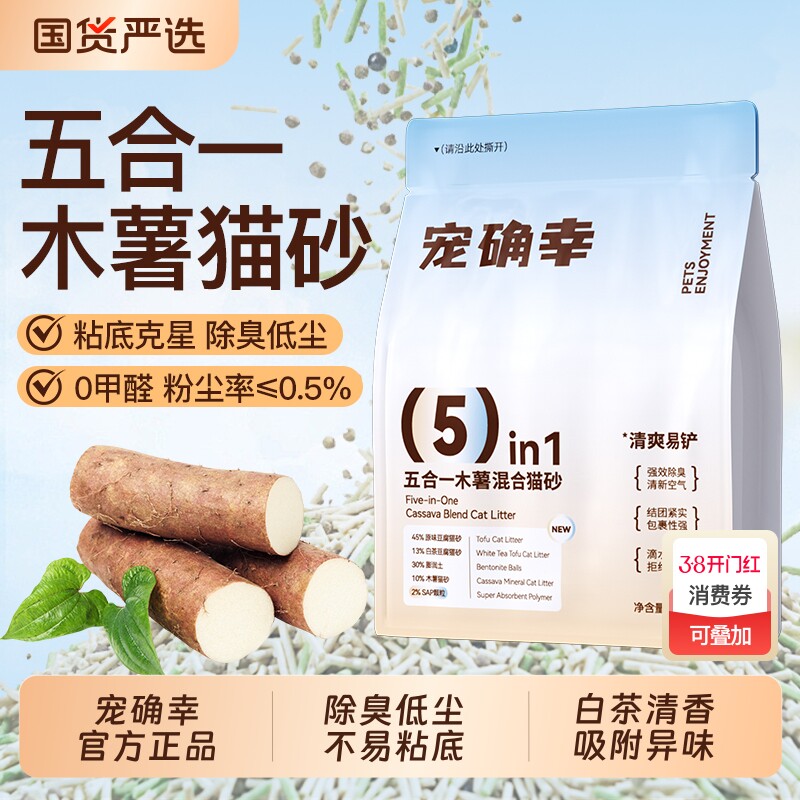 【小袋鼠的快乐生活】全新宠物用品系列,让您的爱宠在享受美味的同时也保持清洁卫生。这款猫砂采用5合1配方,结合了木薯、豆腐等多种成分,既不伤毛发也不刺激皮肤,适合各种猫咪使用。独特的设计,使其不易粘底,易于清理。是您为爱宠打造的理想选择!