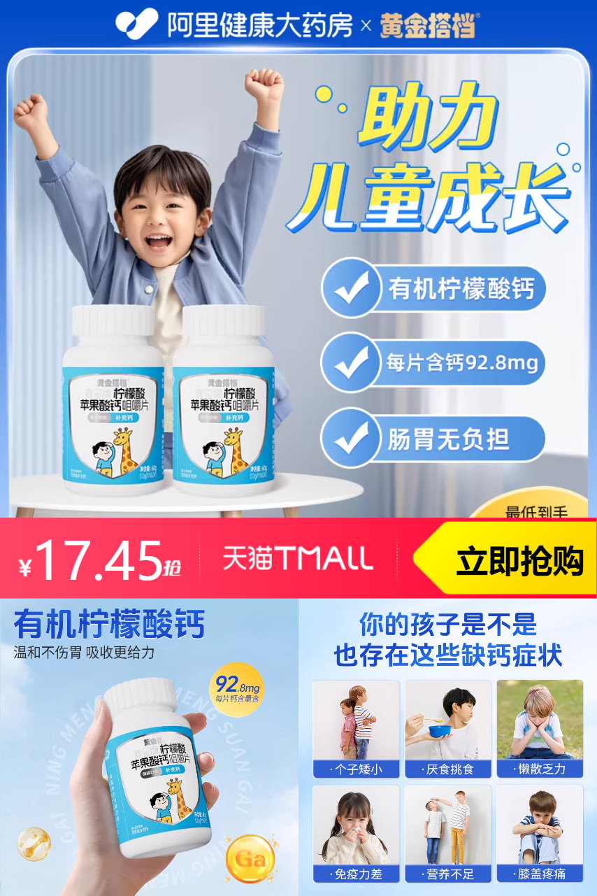 【淘金币可抵0.4,88vip到手16.2】含有多种维生素和矿物质,全方位满足孩子成长所需。每一颗钙片都经过精心研发,确保安全、有效。