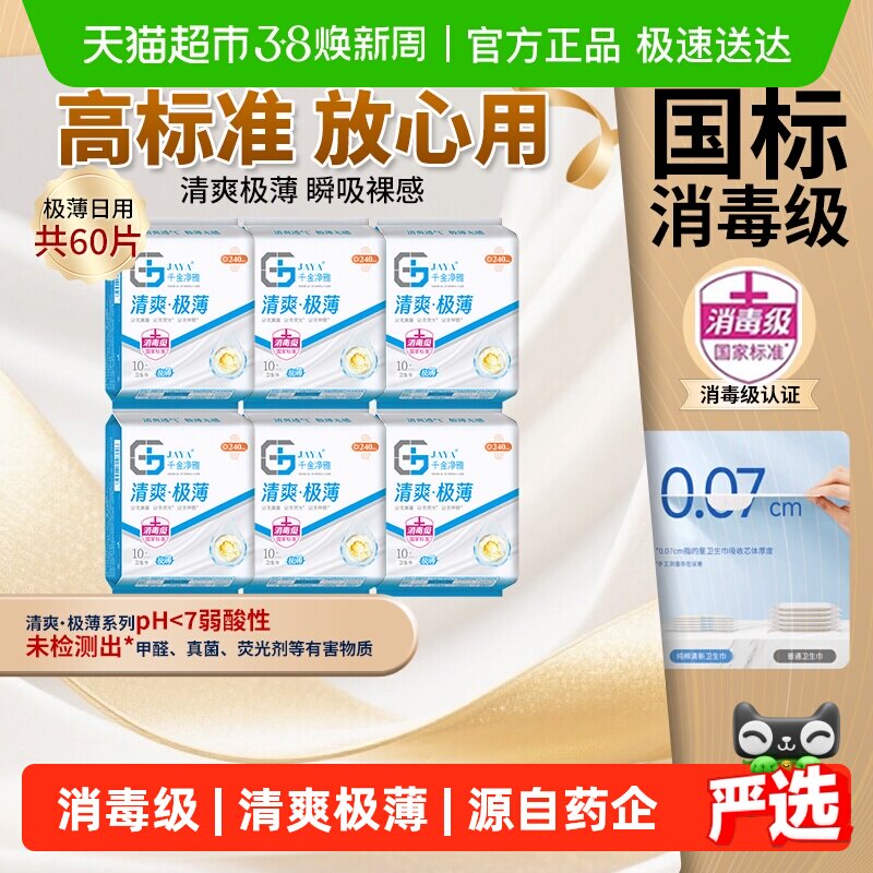 千金净雅,消毒级极薄无感,专为您的健康需求打造。每一片都经过严格消毒处理,确保您使用时的安全与舒适。这款卫生巾采用超薄设计,让您在享受清洁的同时也能感受到的轻盈感受。无论您是月经期间还是日常护理,它都是您的理想选择。