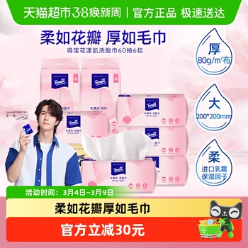 【双倍呵护】得宝加大加厚洗脸巾,柔软绵密,吸水性强,适合干湿两用。精选优质材料,无刺激性,安全健康。随时随地清洁面部,让您享受舒适洁净的肌肤体验。立即,限时优惠中!